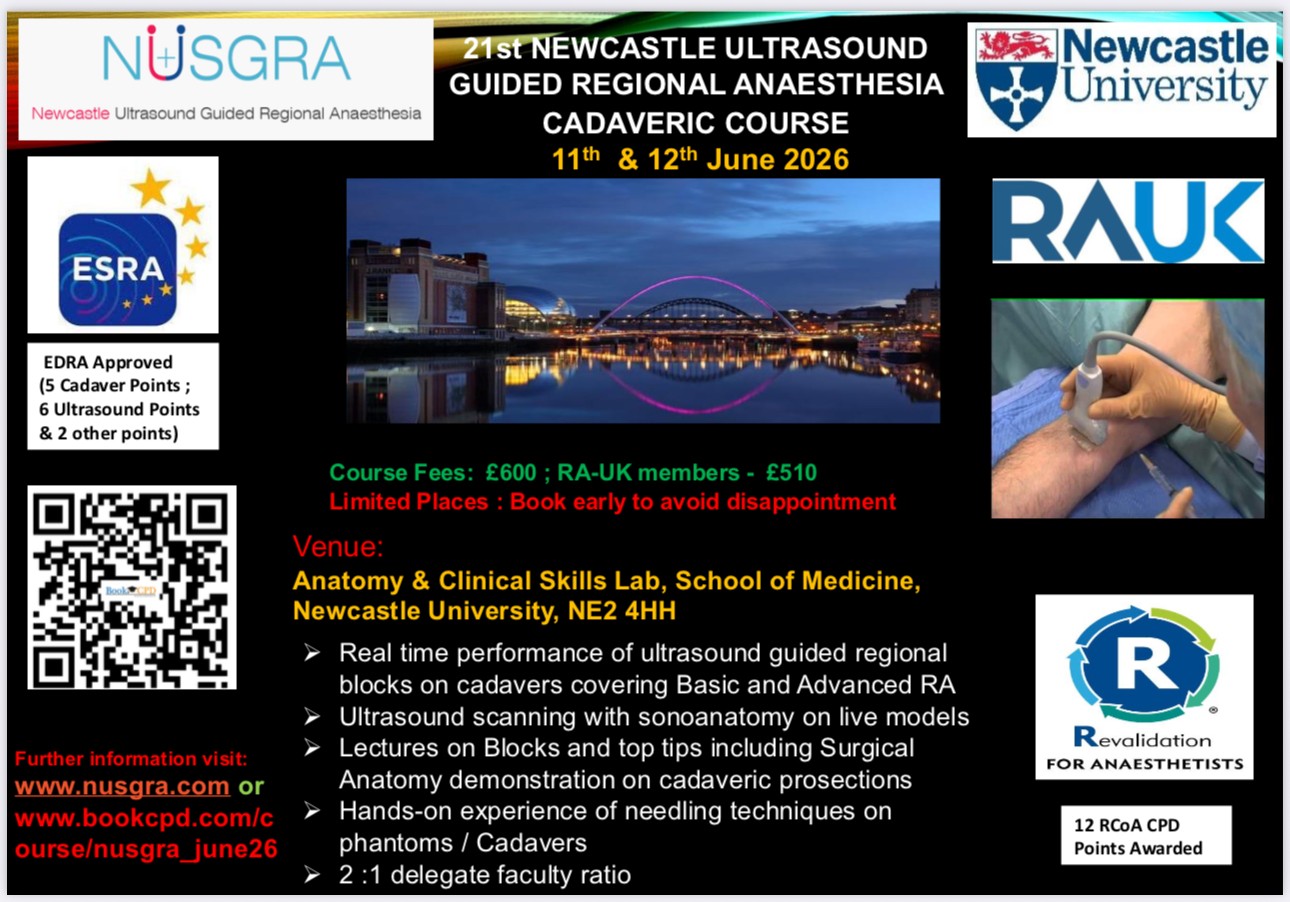 21st Newcastle Ultrasound Guided Regional Anaesthesia Cadaveric Course