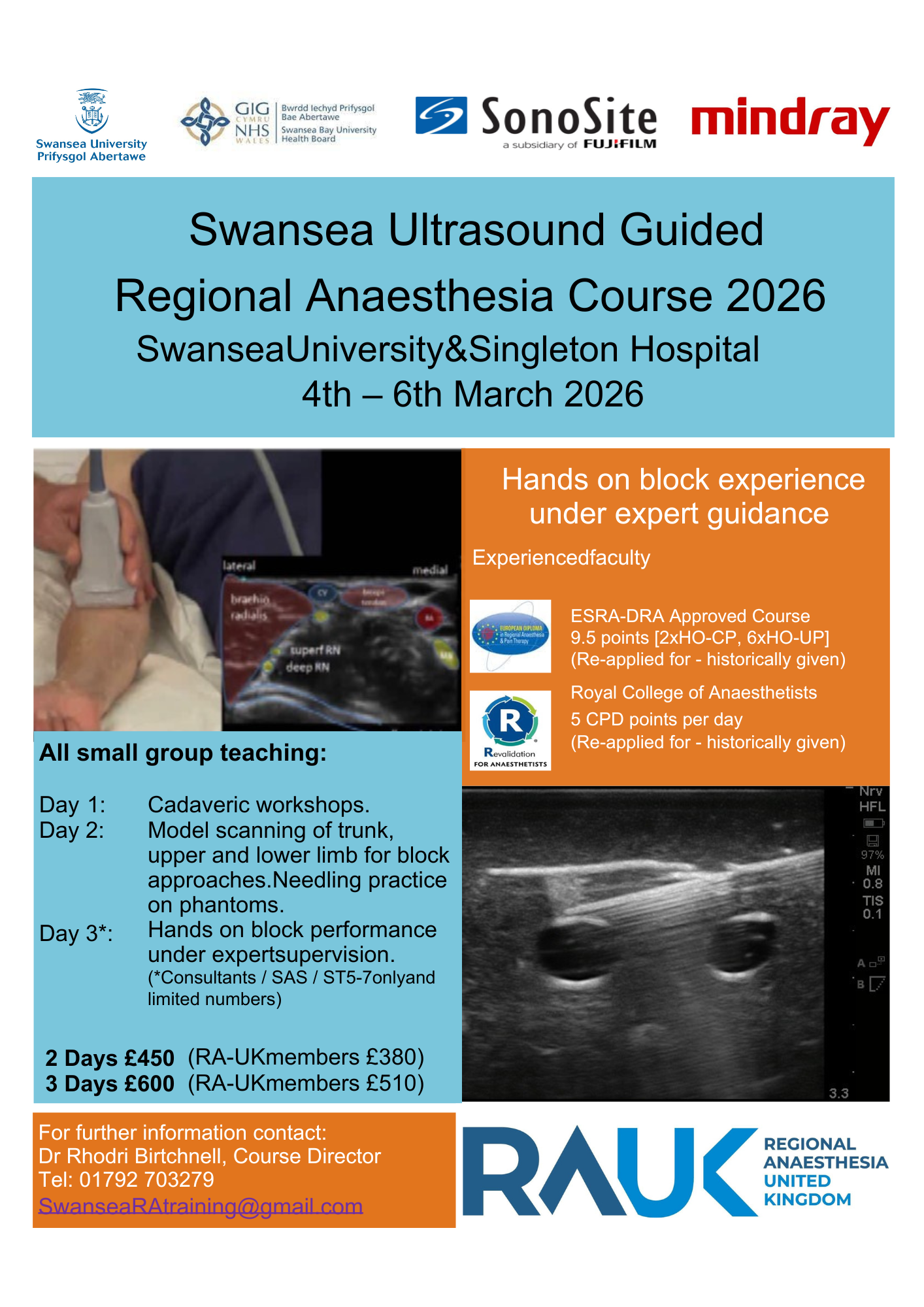 Swansea Ultrasound Guided Regional Anaesthesia Course 2026